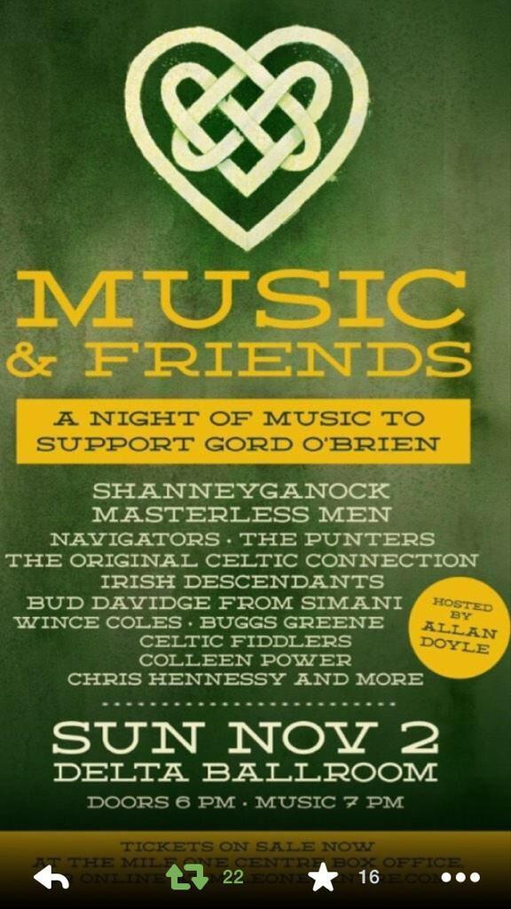 'Magical' fundraiser held for music mainstay Gord O'Brien by CBC Canada published 4 November 2014